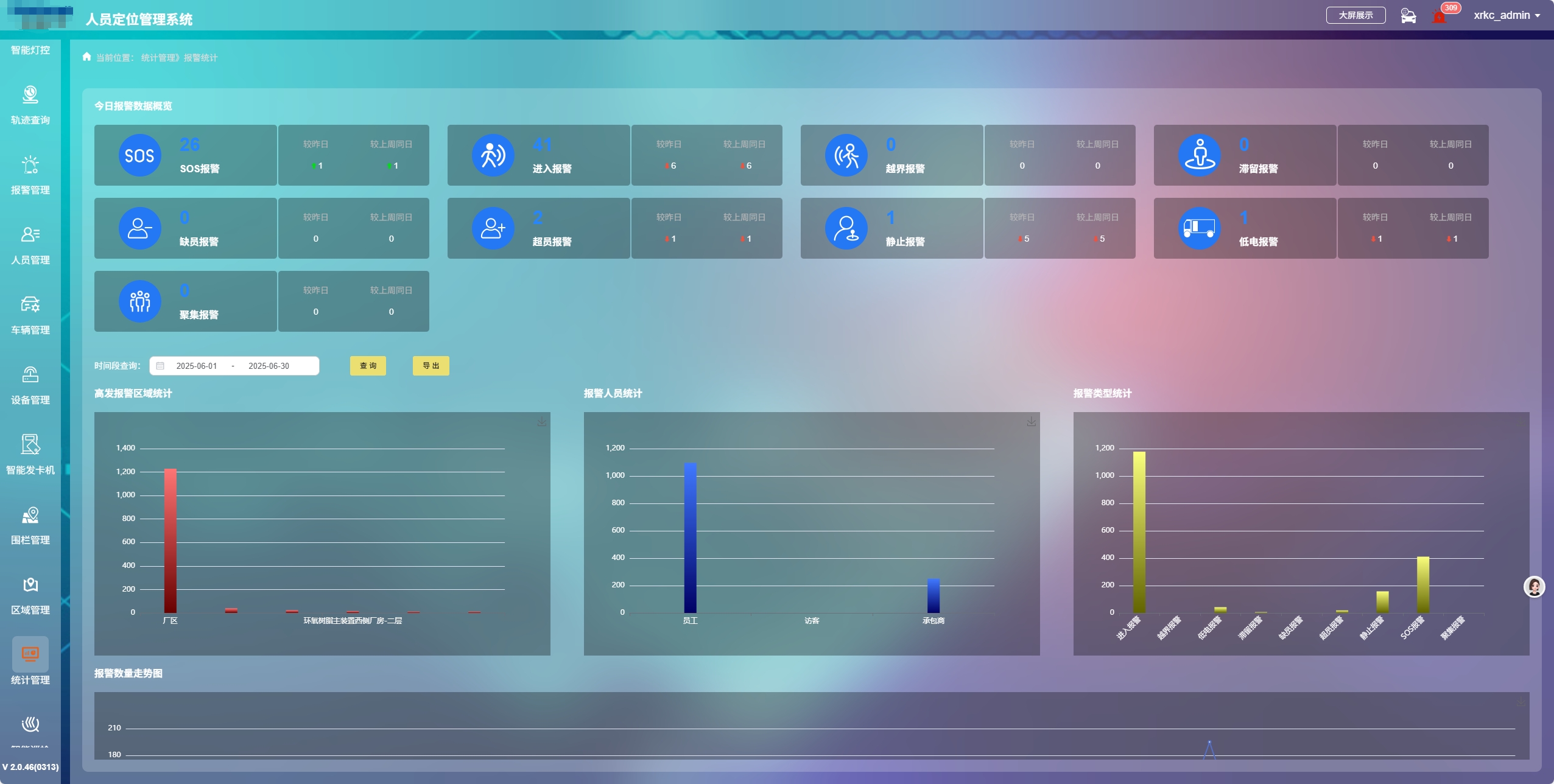 全面展示各區域人員和車輛分布及報警信息,以表格、熱力圖等形式呈現。通過對這些數據統計分析,管理人員可清晰了解不同時段、區域人員和車輛流動情況、安全風險狀態等,為制定工作計劃、資源調配方案及安全管理策略提供數據依據。例如,通過熱力圖直觀掌握人員和車輛集中活動區域,合理安排設備布局和作業流程,提高工作效率和安全性。