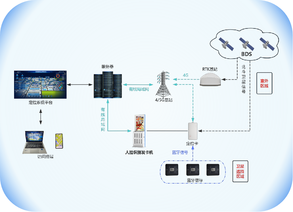 新銳科創RTK+藍牙人車定位系統主要由定位終端、藍牙信標、RTK基站、數據傳輸網絡以及管理平臺等部分組成。定位終端分為人員佩戴型和車輛安裝型,內置藍牙模塊和RTK定位模塊,能夠實時采集自身位置信息;藍牙信標部署在隧道內關鍵位置,負責向周圍空間發射藍牙信號,為定位終端提供近距離高精度定位參考;RTK基站則設立在隧道外開闊地帶,通過接收衛星信號并進行差分處理,為定位終端提供亞米級的高精度定位修正數據;數據傳輸網絡利用4G/5G通信技術,將定位終端采集的數據以及藍牙信標、RTK基站的相關數據快速傳輸至管理平臺;管理平臺集成了數據處理、存儲、可視化展示以及各種管理功能模塊,實現對隧道內人員和車輛位置信息的實時監控與管理。