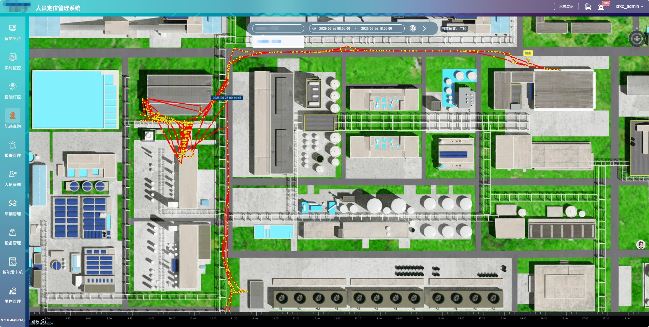 系統具備強大的歷史軌跡記錄和查詢功能。從人員和車輛進入隧道施工區域的那一刻起,其每一個移動軌跡點都被系統自動、準確地保存下來。當需要對某一事件進行溯源分析,或者回顧施工過程中的作業路徑時,管理人員只需在系統中進行簡單操作,一鍵即可查詢并顯示指定人員或車輛在任意時間段內的歷史軌跡。在查詢結果界面,歷史軌跡會以連貫的線條形式在電子地圖上復現,為事故調查、作業流程優化等提供了可靠的依據。