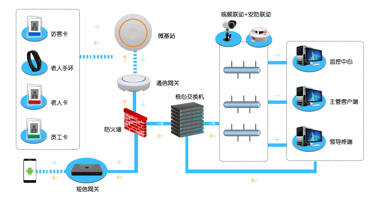 養(yǎng)老院人員定位系統(tǒng)應(yīng)反應(yīng)養(yǎng)老公寓情況、增加老人安全防范級別、加強(qiáng)安全保障措施,部署物聯(lián)網(wǎng)設(shè)備及配套集成平臺軟件,實時定位人員信息及時反應(yīng)老人救助行為,實現(xiàn)與視頻、門禁一卡通等自動化監(jiān)管設(shè)施聯(lián)合動作,提高應(yīng)急響應(yīng)速度和事件的處置速度,有效提高養(yǎng)老公寓的管理水平和管理效率,同時為老年公寓運營管理提供可參考的大數(shù)據(jù)信息,便于養(yǎng)老公寓合理分配資源,為老人提供更加的服務(wù)。