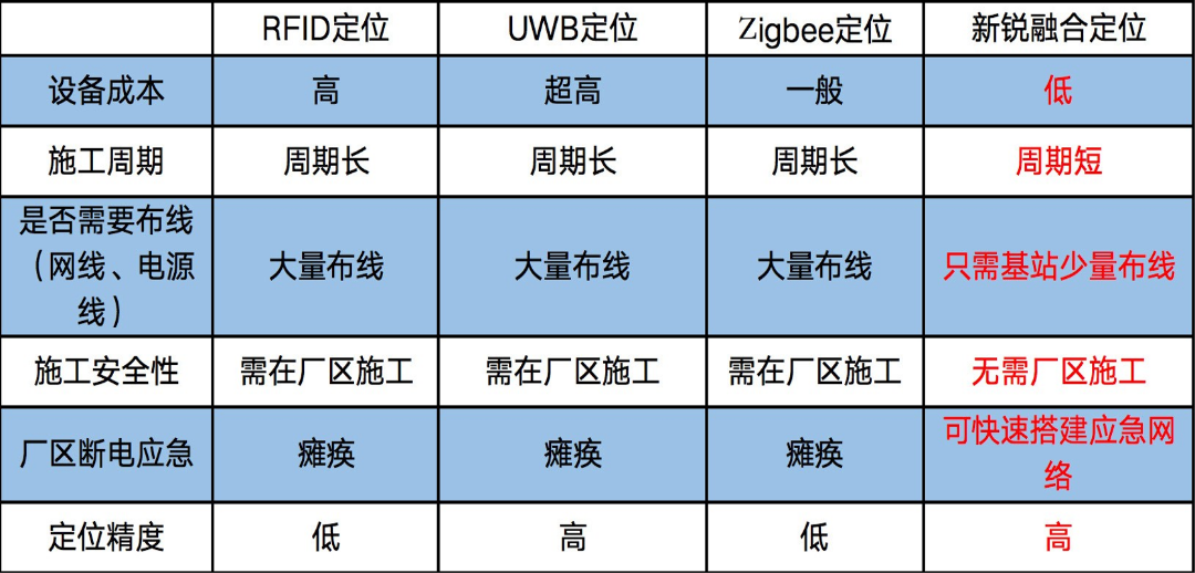 除了以上提及的四種常見技術(shù),目前市場上還有幾十甚至上百種定位技術(shù),比如說,新銳融合定位技術(shù)。新銳融合定位技術(shù)是由新銳科創(chuàng)依托行業(yè)優(yōu)秀的無線通訊專家和數(shù)據(jù)安全開發(fā)團(tuán)隊(duì),融合物聯(lián)網(wǎng)、云計(jì)算、大數(shù)據(jù)、算法引擎等先進(jìn)技術(shù)而來。新銳融合定位技術(shù)設(shè)備成本低,施工周期短,只需基站少量布線,不需要在廠房進(jìn)行弱電施工;即便遇到如燃燒、爆炸類事故導(dǎo)致廠區(qū)斷電等突發(fā)事故,仍可快速搭建應(yīng)急網(wǎng)絡(luò),進(jìn)行求救信息響應(yīng);更為重要的是,新銳融合定位技術(shù)定位精度非常高,用戶體驗(yàn)非常好。