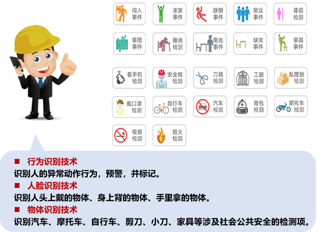 新銳科創(chuàng)智能視頻AI識別系統(tǒng)利用計算機圖像視覺分析技術理解視頻畫面內容,系統(tǒng)將圖像處理、模式識別、智能分析以及信號處理等先進算法技術融入多元化場景中,通過算法優(yōu)化分離場景背景與目標,從海量圖像中自動發(fā)現(xiàn)、分析人的異常行為并立即進行處理,實現(xiàn)包括入侵檢測、圍墻翻越檢測、群體事件檢測、離崗檢測等行為識別,通過運用人工智能的方式來提升監(jiān)控中心管理的智能化和便捷度,為智能安防提供一站式解決方案。