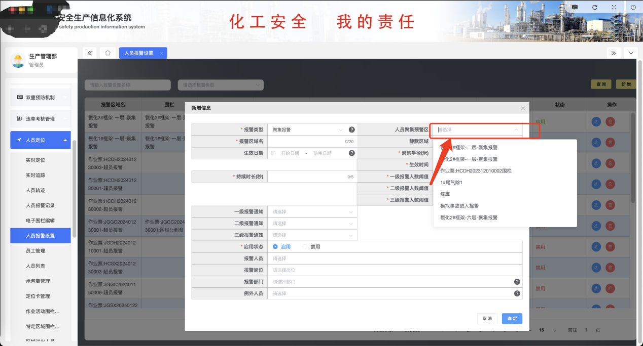 系統(tǒng)支持電子圍欄功能,可以在電子地圖上圈定特定區(qū)域,并設(shè)置進入、離開、滯留、超員等多種報警類型。當有人員未經(jīng)授權(quán)進入或離開圍欄區(qū)域時,系統(tǒng)會立即報警,確保礦山作業(yè)現(xiàn)場的安全。